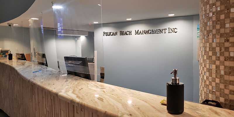 As a guest of Pelican Beach Management, please feel free to visit the Front Desk 24/7 with any concerns or issues you have about your stay.