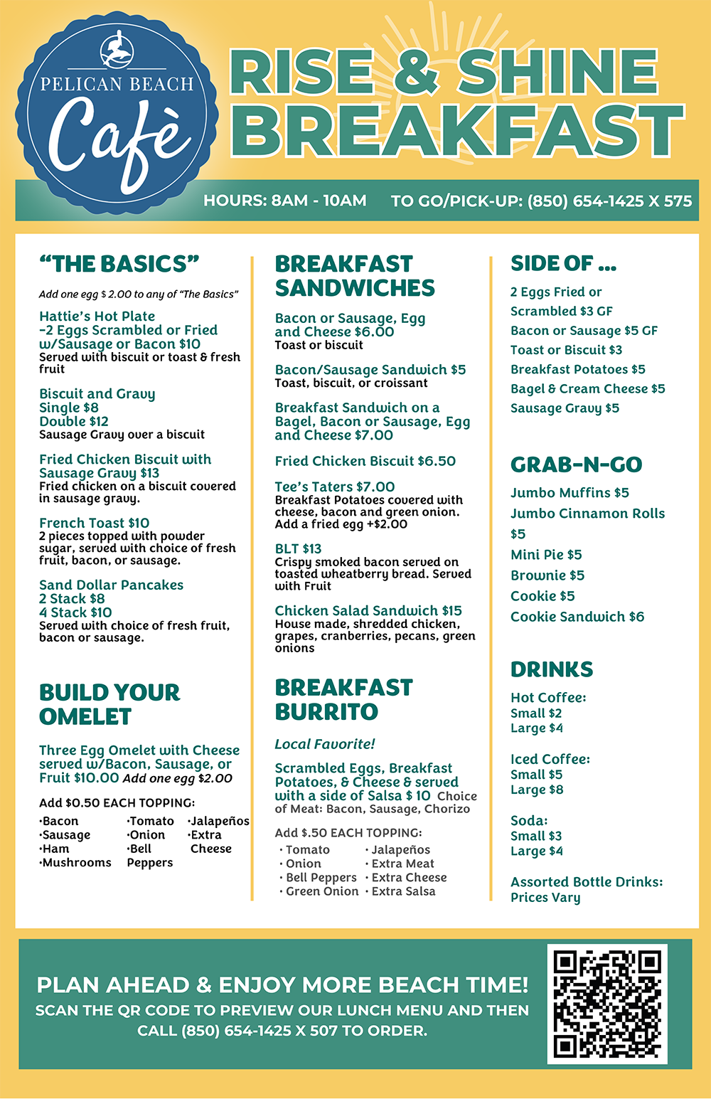 You're on vacation. First requirement: convenient and easy, please. The last thing you want - or need - is to get in your car to find your first cup of coffee, a cooked-to-order breakfast or hearty lunch. The Pelican Beach Cafè is the perfect choice to indulge your vacation attitude.